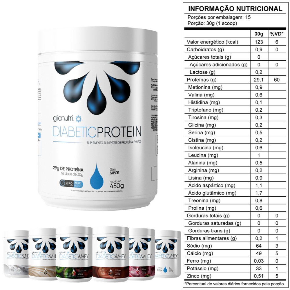 Diabeticprotein Zero Lactose É UMA BEBIDA NUTRITIVA COM MAIS DE 97% DE PROTEÍNA E MENOS DE 1g DE CARBOIDRATO, os ingredientes foram criados e modificados justamente para atender uma alta necessidade de qualidade. Criado especialmente para atender às necessidades de pessoas com diabetes, e de todos que buscam uma proteína premium com benefícios extras. Diabeticprotein é fabricado com os mais altos padrões de qualidade e é rigorosamente testado para garantir que seja seguro e eficaz para pessoas com diabetes e para aqueles que buscam uma dieta com baixo teor de carboidratos e lactose.