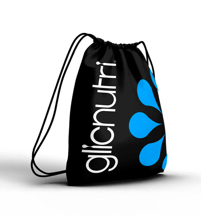 A Sacochila Glicnutri foi criada para acompanhar sua rotina com mais praticidade, leveza e estilo. Com design moderno na cor preta, estampa exclusiva da marca e fechamento por cordão, ela é ideal para levar seus produtos, lanches, acessórios ou itens pessoais no dia a dia.