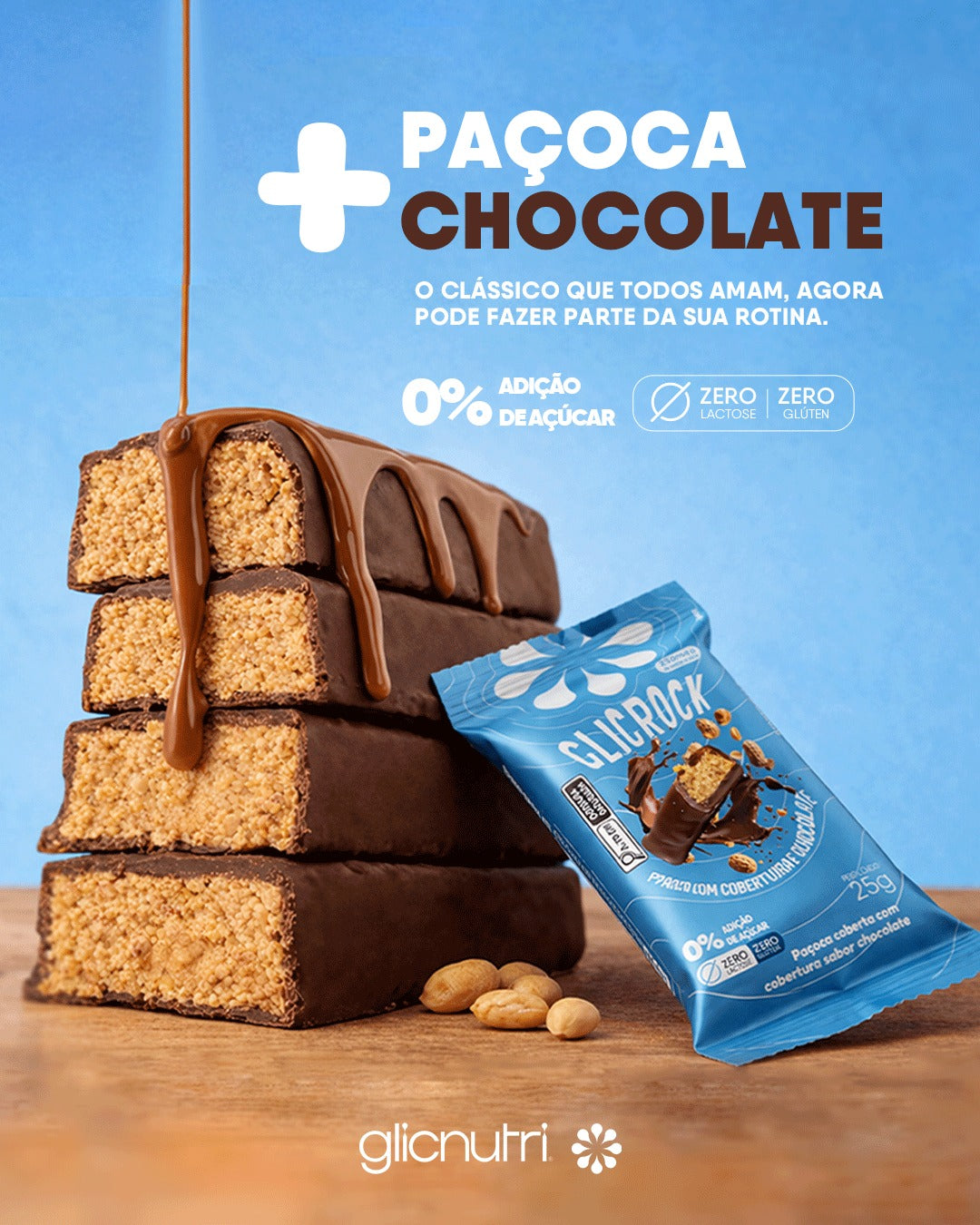 • Whey Protein Isolado Zero Lactose Lowcarb GlicProtein 450g + Caixa 12und GlickRock